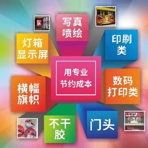 噴繪、黑底噴繪、車貼、黑底車貼、UV軟膜、透明車貼、單透貼、網格布、晶彩格;寫真:背膠、戶外寫真,透明背膠、PP紙、燈片、相紙、PVC硬片、展板、展架、易拉寶、門型展架、拉網展架、人形架,玻璃貼、寫真布;條幅:絲印橫幅,錦旗,班旗,流動紅旗,禮儀帶,袖章等。承接:名片、單頁、邀請函、價格標簽、宣傳單。軟膜,油畫布,刀刮布,彩旗等印刷品